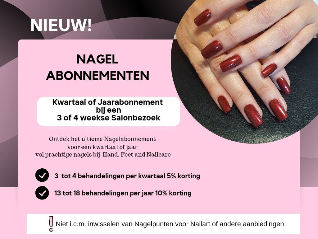 Abonnement voor een nabehandeling Acryl, AcrylGel, Gel, Biabnagels of Natural Nail Treatment inclusief Shellac of Gelpolish